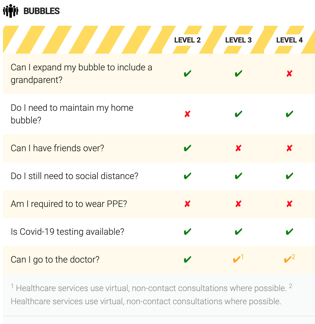 At alert level 2, you can break your bubble, but Auckland is “stepping into” level 2. That means to start with, gatherings should have no more than 10 participants.